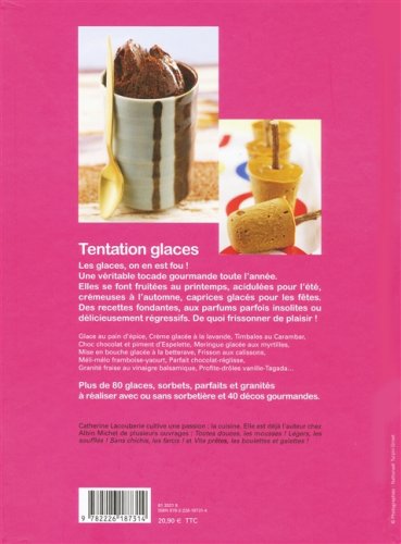 Tentation Glaces Catherine Lacouberie pdf download - Tentation Glaces a été écrit par Catherine Lacouberie qui connu comme un auteur et ont écrit beaucoup de livres intéressants avec une grande narration. Tentation Glaces a été l'un des livres de populer sur 2016. Il contient 167 pages et disponible sur format . Ce livre a été très surpris en raison de sa note rating et a obtenu environ avis des utilisateurs. Donc, après avoir terminé la lecture de ce livre, je recommande aux lecteurs de ne pas sous-estimer ce grand livre. Vous devez prendre Tentation Glaces que votre liste de lecture ou vous serez regretter parce que vous ne l'avez pas lu encore dans votre vie.Rang parmi les ventes Amazon: #847298 dans LivresPublié le: 2008-04-30Langue d'origine: FrançaisDimensions: 7.87" h x .63" l x 10.63" L, .0 livres Reliure: Broché167 pagesExtraitBase de sorbet Pour 6 personnes 500 g de pulpe de fruits 25 cl d'eau 250 g de sucre en poudre À la sorbetière ° Faites bouillir l'eau et le sucre en poudre pendant 1 min pour obtenir un sirop. Laissez-le refroidir. ° Mixez les fruits et passez-les au tamis si nécessaire. ° Versez le sirop refroidi par-dessus. Mélangez. ° Versez la préparation dans la sorbetière et turbinez selon le mode d'emploi de votre appareil. ° Quand le sorbet est pris, placez-le au congélateur dans un récipient hermétique. ° Sortez le sorbet du congélateur et mettez-le au réfrigérateur 20 min avant de servir. Sans sorbetière. Mettez directement la préparation au congélateur et sortez-la au bout de 1 h. Remuez vigoureusement au fouet ou à la fourchette. Remettez au congélateur et répétez l'opération toutes les 30 min jusqu'à obtention de la consistance souhaitée. Sirop Pour 30 cl de sirop 20 cl d'eau 200 g de sucre en poudre ° Faites bouillir l'eau et le sucre en poudre pendant 1 min pour obtenir un sirop. Ce sirop sert de base pour les sorbets (voir ci-dessus) ou les granités (voir ci-dessous). Il peut être préparé à l'avance en plus grande quantité et conservé dans une bouteille au réfrigérateur pendant plusieurs semaines.Présentation de l'éditeurTentation glaces Les glaces, on en est fou ! Une véritable tocade gourmande toute l'année. Elles se font fruitées au printemps, acidulées pour l'été, crémeuses à l'automne, caprices glacés pour les fêtes. Des recettes fondantes, aux parfums parfois insolites ou délicieusement régressifs. De quoi frissonner de plaisir ! Glace au pain d'épice. Crème glacée à la lavande, Timbales au Carambar, Choc chocolat et piment d'Espelette, Meringue glacée aux myrtilles. Mise en bouche glacée à la betterave, Frisson aux calissons, Méli-mélo framboise-yaourt. Parfait chocolat-réglisse. Granité fraise au vinaigre balsamique, Profite-drôles vanille-Tagada... Plus de 80 glaces, sorbets, parfaits et granités à réaliser avec ou sans sorbetière et 40 décos gourmandes. Catherine Lacouberie cultive une passion : la cuisine. Elle est déjà l'auteur chez Albin Michel de plusieurs ouvrages : Toutes douces, les mousses ! Légers, les soufflés ! Sans chichis, les farcis ! et Vite prêtes, les boulettes et galettes !Biographie de l'auteurCatherine LACOUBERIE cultive une passion : la cuisine. Elle reçoit beaucoup, crée des plats, réinvente certains classiques, fait des expériences personnelles. Elle est déjà l'auteur chez Albin Michel de 5 ouvrages : Du poulet, s'il vous plaît ! - Toutes douces, les mousses ! - Légers, les soufflés ! -Sans chichis, les farcis ! et Vite prêtes, les boulettes et galettes !